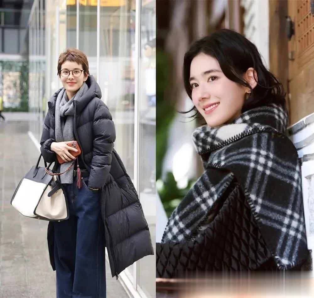 黑色羽绒服想穿得显高显瘦,冬天可以试着把门襟敞开来穿,既能避开臃肿感,还能把中年女性的利落和气韵很好地展现出来。